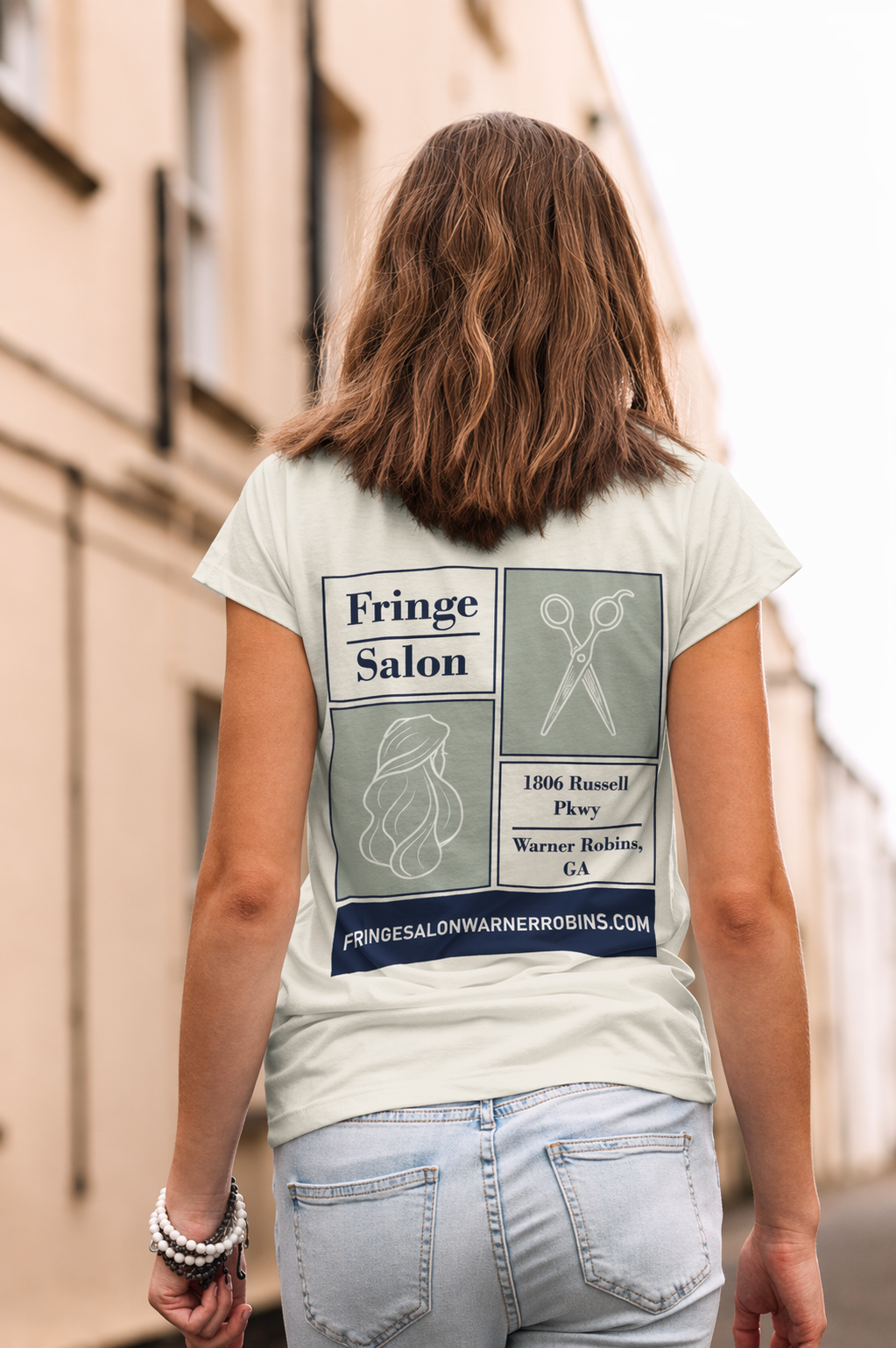 A set of T-shirt designs for Fringe Salon, a luxury hair salon and boutique operating out of middle Georgia.